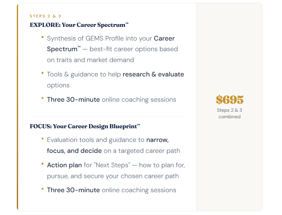 This service is especially helpful for students who feel unsure, overwhelmed, or pressured to have everything figured out. Our role is to help bring clarity, reduce stress, and support age appropriate, thoughtful decision-making with career planning.